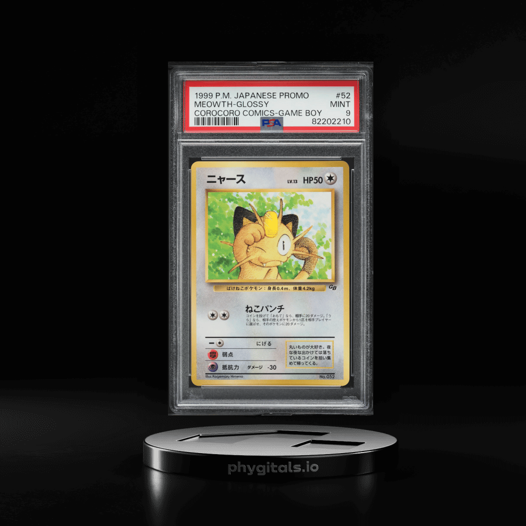 1999 Pokemon Japanese Promo Corocoro Comics Game Boy Glossy Meowth #52 PSA 9
