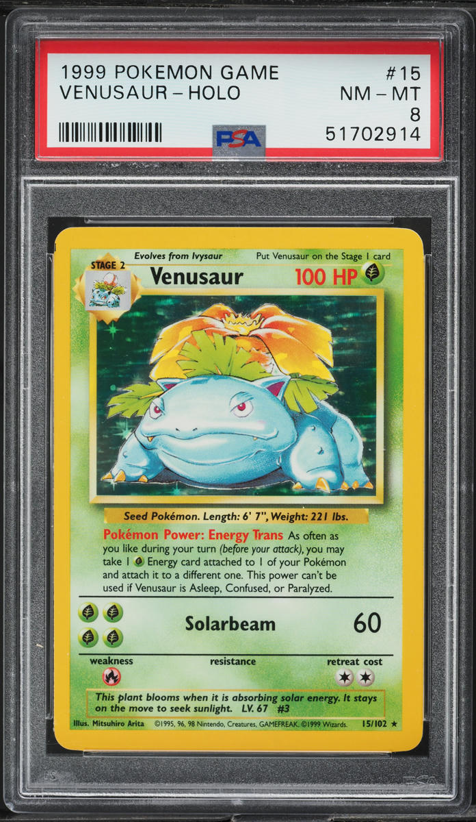 1999 Pokemon Base Set Holo Venusaur #15 PSA 8 NM-MT