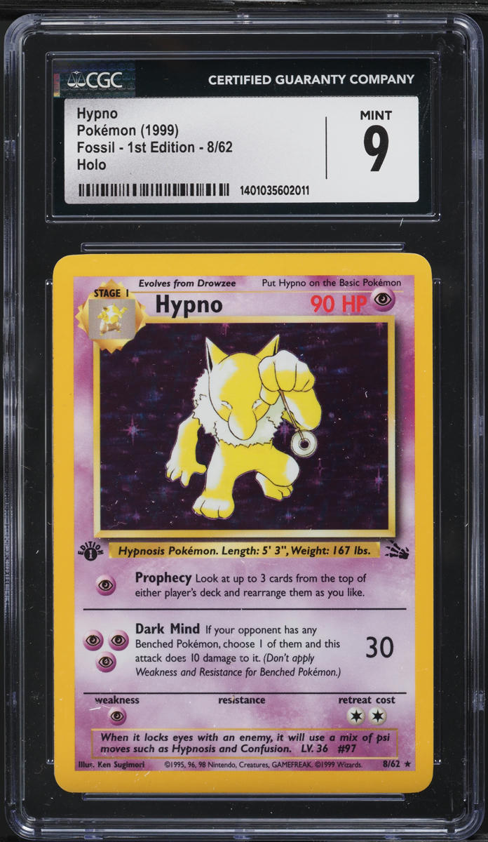 1999 Pokemon Fossil 1st Edition Holo Hypno #8 CGC 9 MINT
