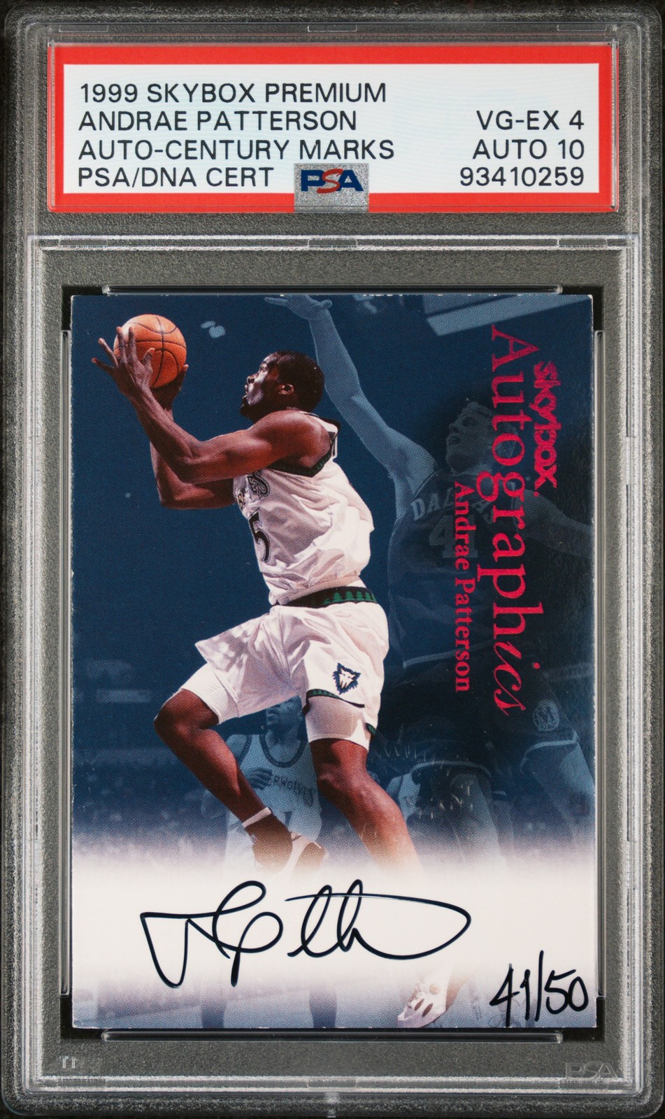 1999 SKYBOX PREM AUTOGRAPHICS CENTURY MARKS ANDRAE PATTERSON 41/50 PSA 4 AUTO 10